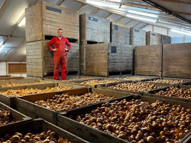 荷蘭農民布洛克在2023年收成117公噸的洋蔥,然而每顆都只有紅蔥的大小。(圖片來源:Flevopost)