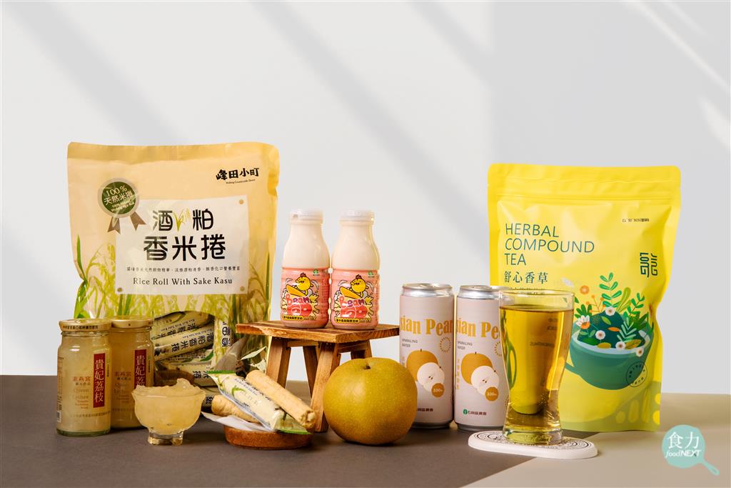 臺中市農產加工推出多款產品,包括霧峰的酒粕香米捲、石岡的水梨氣泡飲、龍井的舒心香草茶、太平的貴妃荔枝素燕窩,以及臺中農會的BeanGo最優豆豆奶。這些產品結合在地農產與加工,展現健康、天然與多層次風味,深受網友好評。