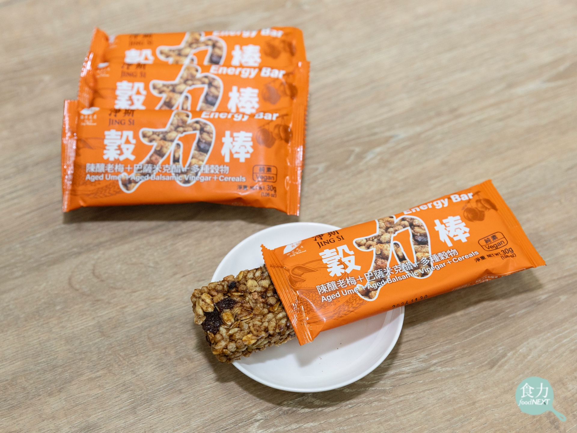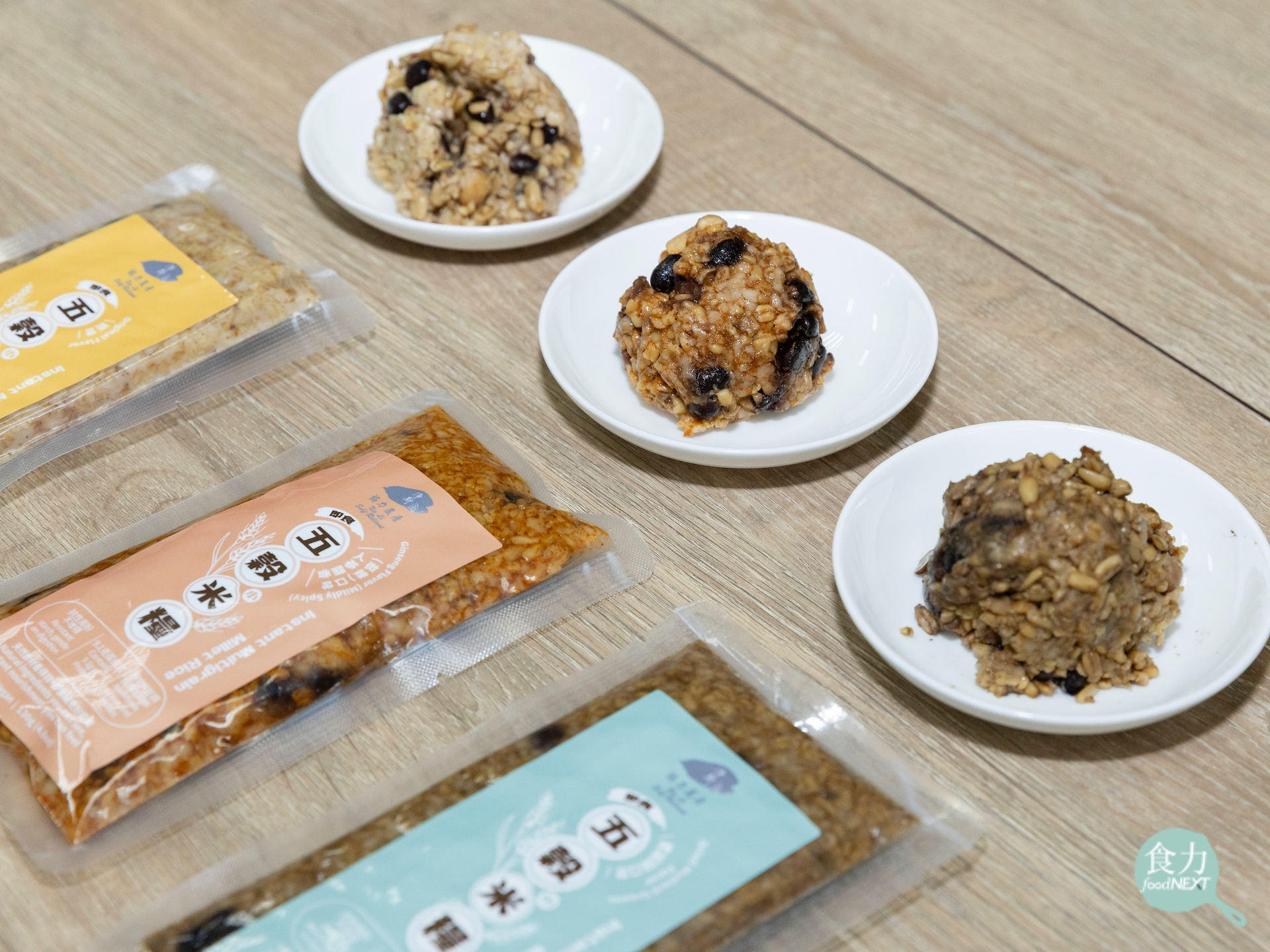 淨斯即食五穀小米糧與穀力棒,前者以小米與多種穀豆製成,拆袋即食、亦可加熱,作為災後前期的主食補位;後者對應移動與長工時情境,強調隨身補能量、降低甜膩與口感過乾帶來的飲水負擔。(段歆惟攝)