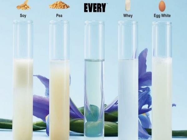 一般來說,植物蛋白的水溶性較差,加入水中還是會有沈澱物於底部,而動物蛋白雖然水溶性較佳,不過通常會有較明顯的味道,例如乳清蛋白會有牛奶的味道,而雞蛋來源的蛋白質則會有蛋味。Every Clear Egg的則涵括高溶解度及無色無味的特性,讓它在產品使用上有更佳的競爭力。