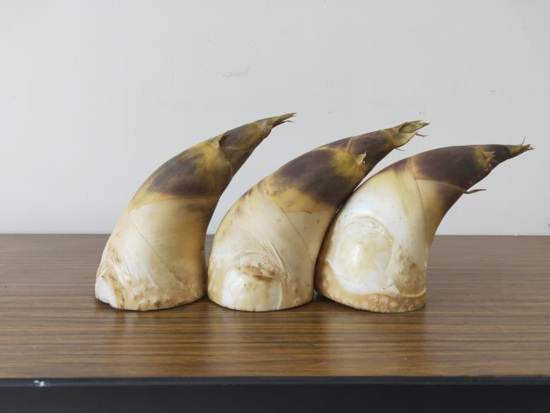 3、「美」是觀察外觀型態,包括筍殼顏色、筍尖端沒有出菁變綠、筍型彎曲度、基部沒有芽眼等。筍殼顏色若有白色條紋是嵌紋病毒病徵狀,輕微者不影響品質、嚴重者影響風味口感。筍尖出菁變綠會產生苦味,剖開觀察生長點會有空隙。筍型彎曲者肉多殼少,剝筍率會提高。筍基部若有芽眼表示切筍部位太後端,纖維較硬不夠鮮嫩,烹煮時要切除太老的纖維部位,可食的筍肉就減少了。