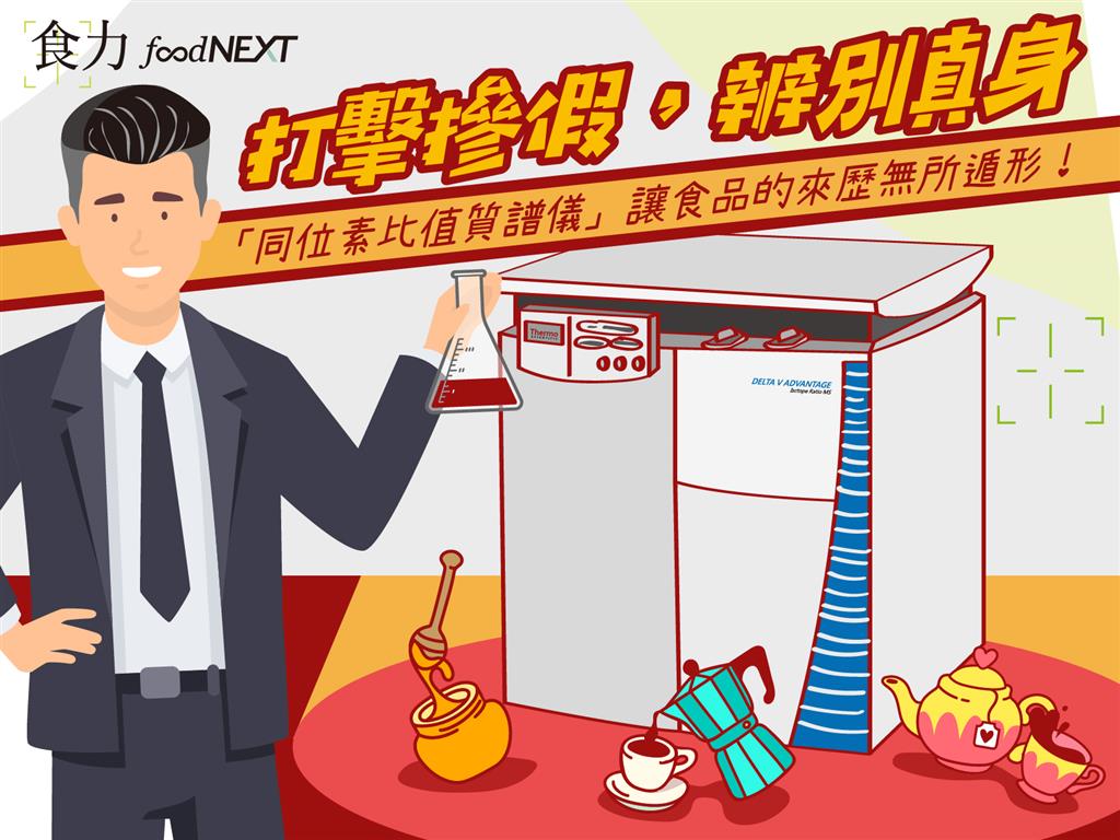 食品詐欺事件層出不窮,像是蜂蜜原料摻假、以劣質米混充優質米等問題難以用肉眼鑑定,但透過「同位素比值質譜儀」的幫助,分析「同位素指紋」、協助驗明食品來源與辨別摻偽,幫助抓出摻混廠商。