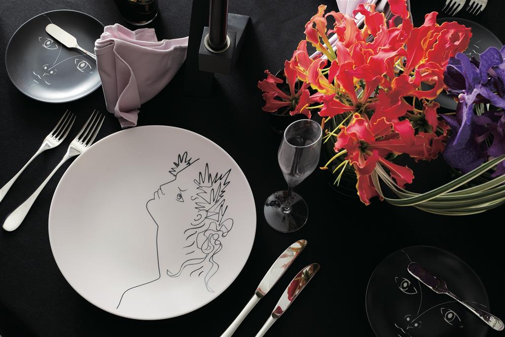 以前西式食器的正式餐桌配置,是指湊齊同品牌的同系列產品。最近的趨勢則是配合菜餚挑選材質進行配置,像是大膽改變系列產品,或是搭配不同材質,展現器皿具備的歡樂感。