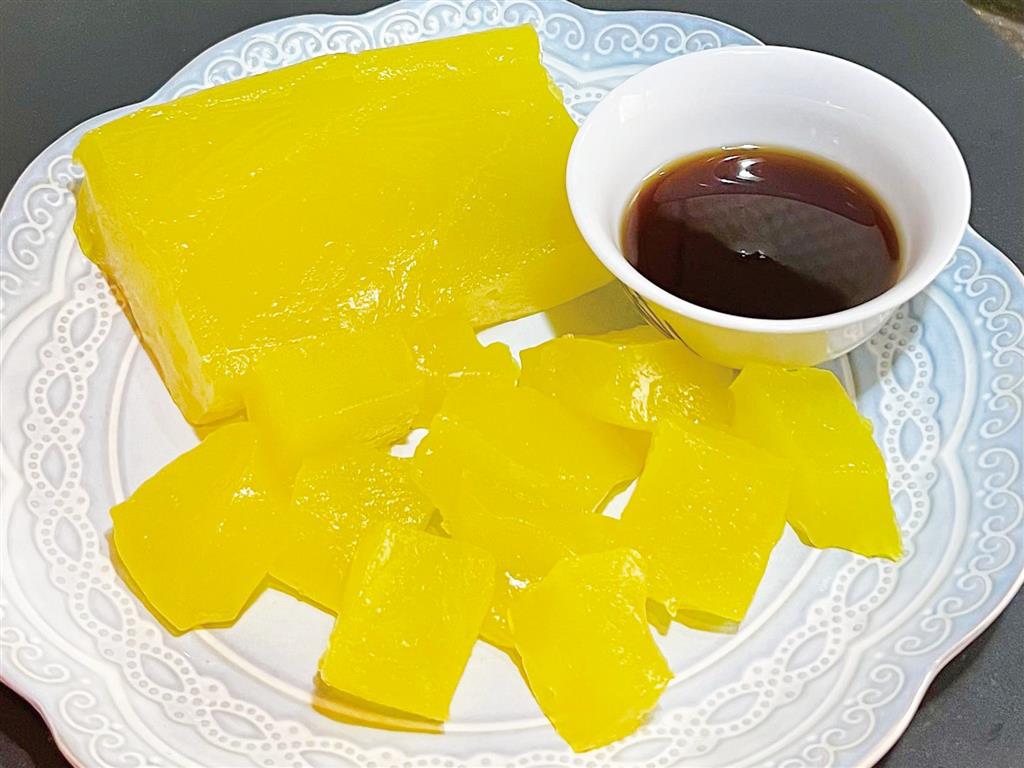 粉粿以番薯粉、木薯粉製成,以黃梔子染色,成為台灣人很喜歡的夏季涼品。