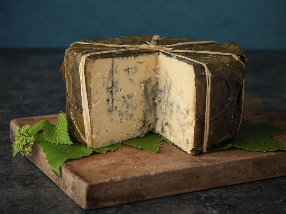 產於美國奧瑞岡州的羅格谷(Rogue Valley)的Rogue River Blue藍紋乳酪包覆在有機葡萄葉中。(圖片來源:independent)