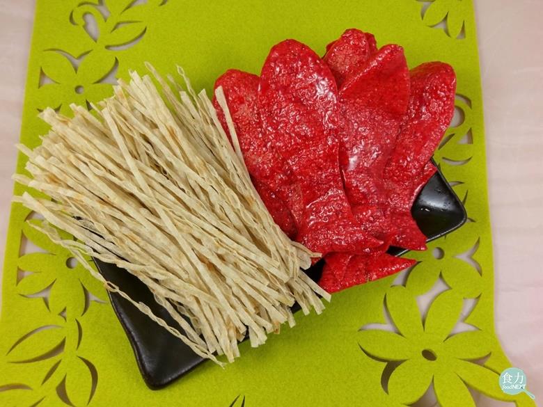 李娟娟說明,烘烤發泡後,緊接下來是「回軟、熟成」的步驟,在這個過程中調整大豬公成品的含水量,使其保持在8%,最後切成5x5cm、0.5mm厚度的大小,再加入糖汁、糖粉進行調味,使成品中的水分保持在12%的之間,而這樣的軟度是最ㄙㄨㄚˋ嘴的!