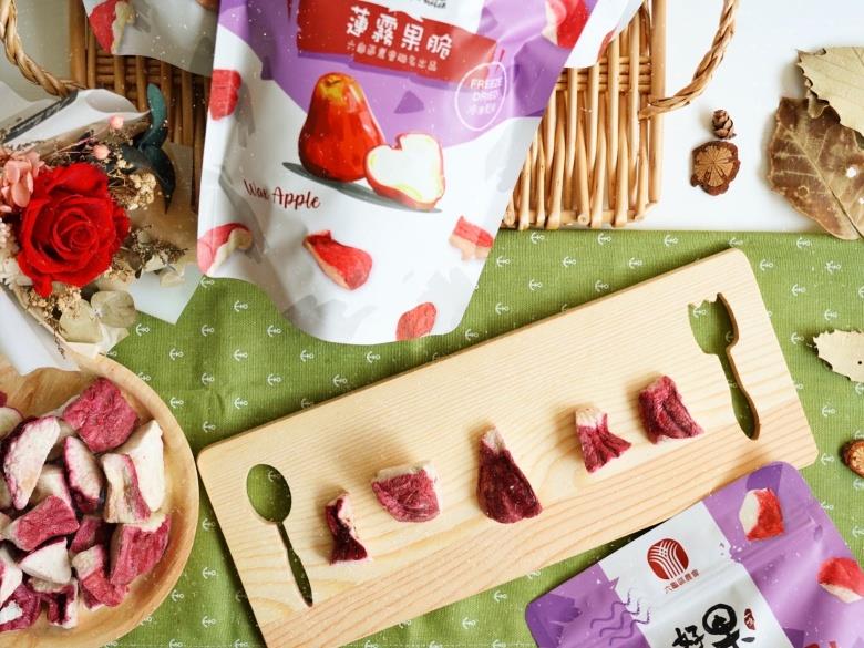 六龜區農會與一鳴生技農園合作推出「好結果蓮霧果脆」,林芷蕾說明,利用-40度C冷凍乾燥技術及48小時乾燥製成「蓮霧凍乾」,更能讓口感酥脆。
