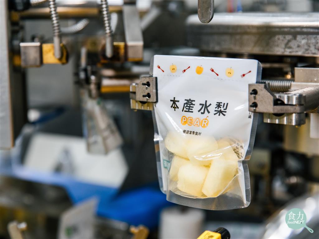 東勢區農會水梨經過光波檢測儀檢查品質後,品質良好但外觀次等者會送至截切加工廠,透過自動化的設備清洗、人工截切後包裝送至全台各大通路超商販售。(張偉明攝)