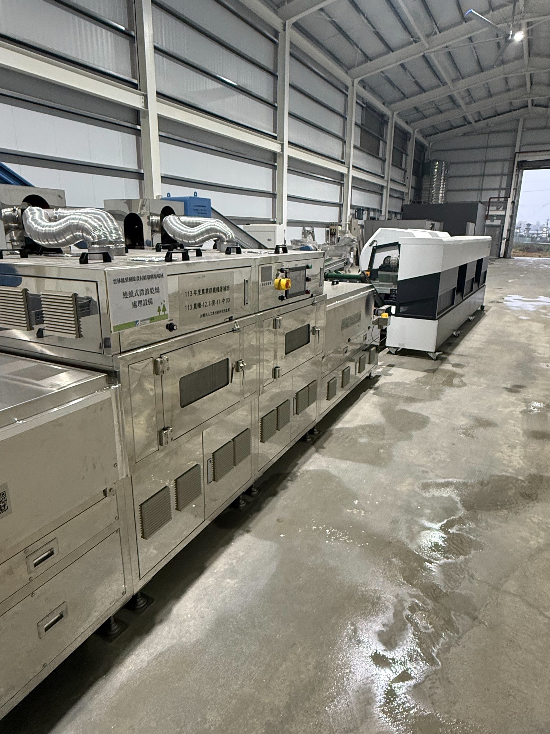 纖維抽取後烘乾作業:連續式微波乾燥處理設備。(圖片來源:農業部提供)