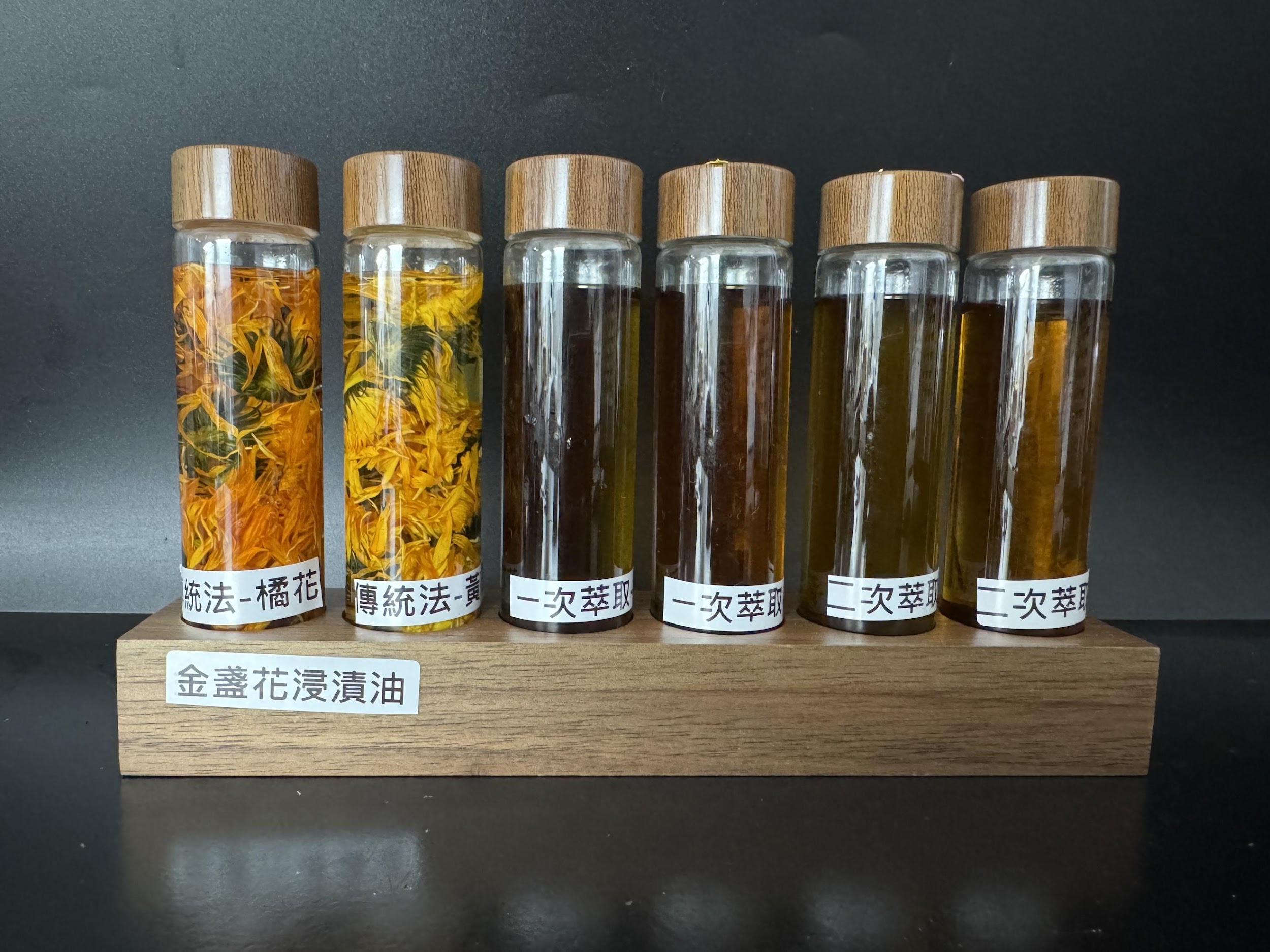 桃園場表示,葉黃素與視力保健有關,主要存在於眼睛視網膜的黃斑部,人體無法自行合成,需要透過飲食進行補充。目前已知金盞花是葉黃素含量最豐富的植物,然而總類胡蘿蔔素及葉黃素等機能性成分具高度環境不穩定性,容易因光照、氧氣及熱能而降解。市售葉黃素保健食品多以膠囊形式保護機能性成分,這對於不擅長吞嚥之孩童或銀髮族來說相當不方便。該場開發之「超音波水浴萃取技術」是利用植物油於低溫條件快速萃取,可有效減少機能性成分之破壞,並提升生物利用率,讓營養攝取變得更有效率。