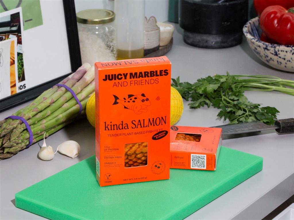 植物性海鮮進入全新階段!Juicy Marbles與Revo Foods合作推出「Kinda Salmon」,這是全球首款外觀與質地逼近真魚的植物性鮭魚片,不同於市面多見的魚塊或裹粉製品。消費者可像料理真鮭魚般自由煎、烤、炸或入湯。每片含13克蛋白質,還提供微藻來源的Omega-3,是結合美味、健康與永續的新選擇,目前已率先於美國上架,未來將拓展至歐洲市場。