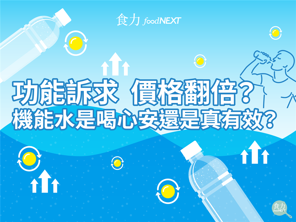 由上述數值可推估,由於消費者更加重視健康,瓶裝水品牌開始有各式的機能宣稱,例如:離子水、鹼性水可以加速人體吸收,或是美容保養等機能訴求,讓喝水也有附加價值,不只滿足消費者的解渴需要,也能更加輕鬆滿足健康美容的追求。但水真的有這些功能嗎?