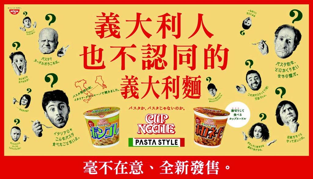 倘若日清打出「從日清杯麵孕育而生的新型態正統義大利麵」的標語,搞不好在網路上會收到「好像也不怎麼樣嘛」、「與期待不符」這樣的評論,因此日清反向推出「義大利人也不認同的義大利麵,毫不在意全新發售」的行銷手法。