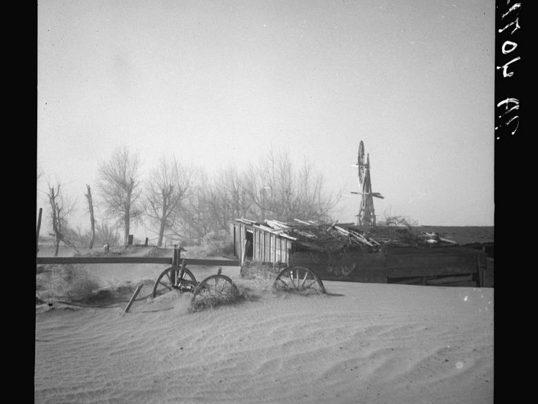 美國奧克拉荷馬州,被沙塵掩埋的荒蕪土地。圖片來源:美國國會圖書館網站
