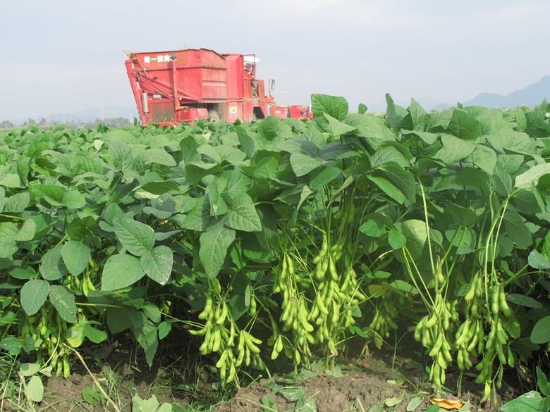 戴場長進一步說明,高雄場首先研發品種,推出「高雄9號-綠晶」及「高雄11號-香蜜茶豆」等高產優質的毛豆品種授權產業界應用,另為擴大研發成果效益,與各授權廠商合作,於高屏地區推動「毛豆大農場機械化及智慧化精準生產」,輔導專業豆農擴大農場規模,邁向科學化管理及企業化經營,有效降低生產成本,建立了優質安全的毛豆外銷產業體系。