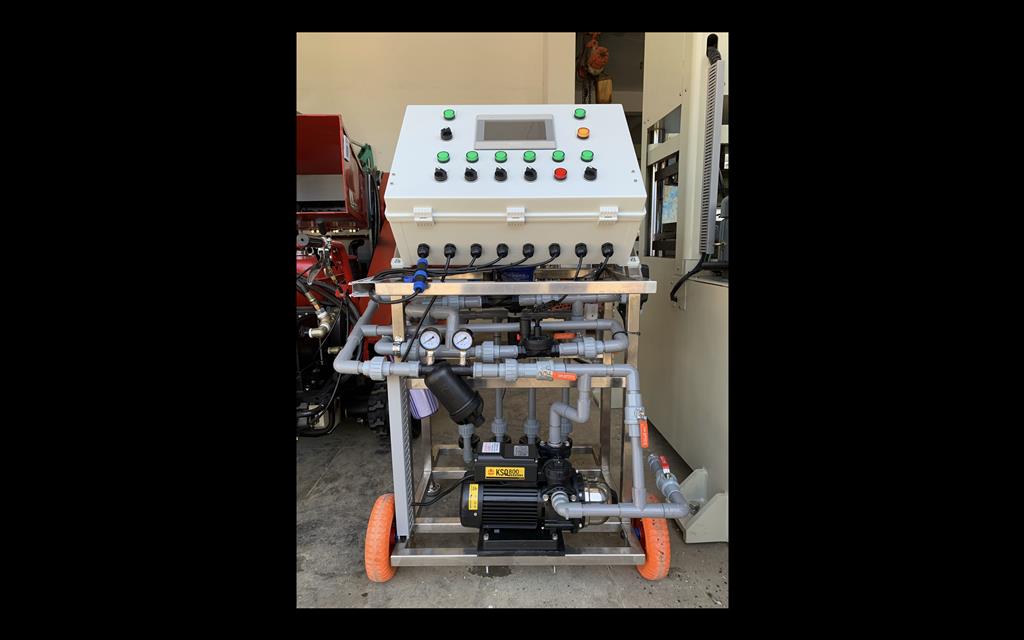 為便於農友安裝使用,本系統已將主機、泵浦、注肥器、過濾器及電磁閥等所有構件安裝於可移動的機台上,使用者僅需將裝置移置定位,並插入電源及連接滴灌管路後即可開始作業,無需水電人員協助安裝。