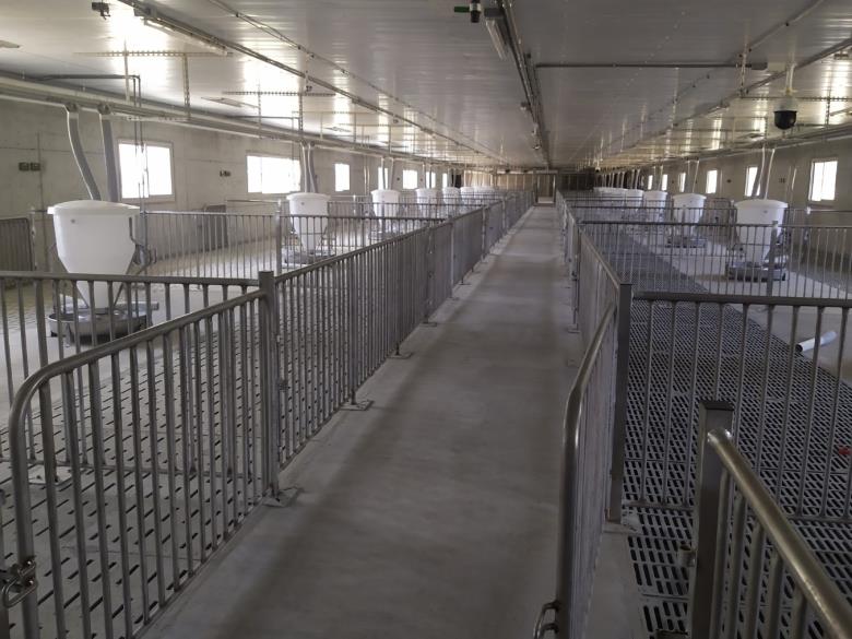 模組化密閉式標準肉豬舍豬舍地面不須每日沖洗,減少沖洗豬舍的用水量並降低廢水量。(圖片來源:農委會提供)