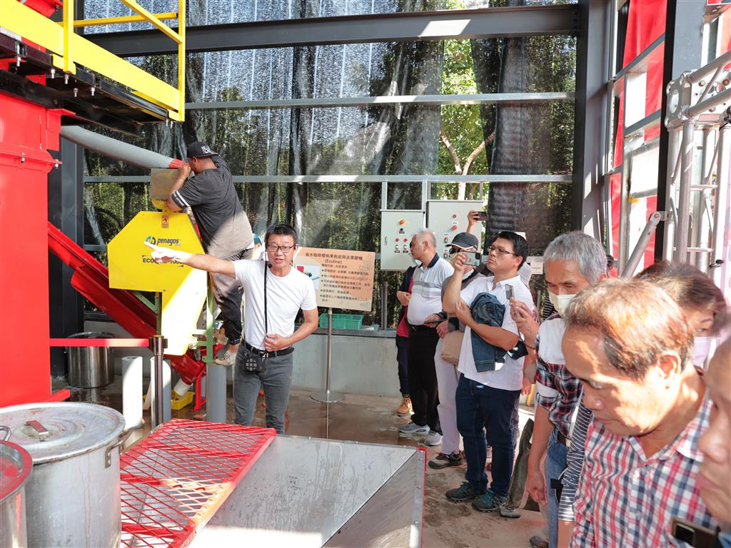 農試所嘉義農業試驗分所與農糧署合作引進咖啡自動ㄧ貫化機具,期待提升咖啡果實採後處理效率以擴大市場供應能力。(圖片來源:農試所提供)
