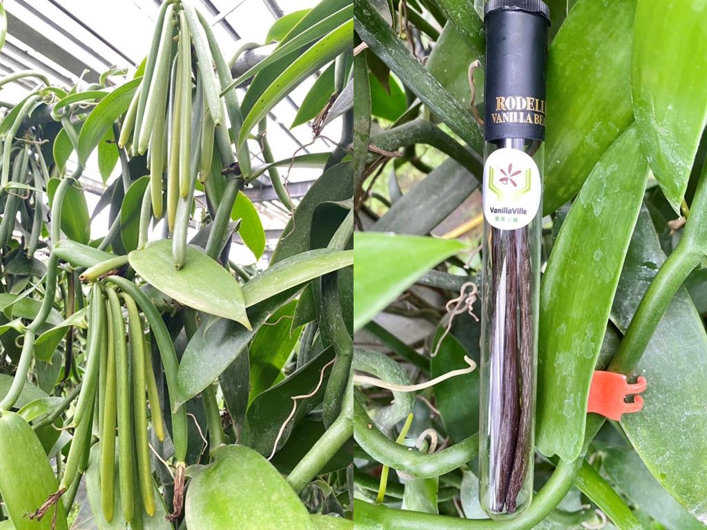 來自屏東林邊鄉的陳錦超與吳麗珠牙醫師歷經5年時間,於光電板下成功種植香莢蘭,收成後製的香草莢更榮獲2024比利時ITI國際風味評鑑所最高三星獎殊榮。其中,香草醛含量是國際評斷香草莢品質的重要指標,屏東林邊所產出香草莢的香草醛平均含量可達2.2%,高於國際A級品平均的1.8%。