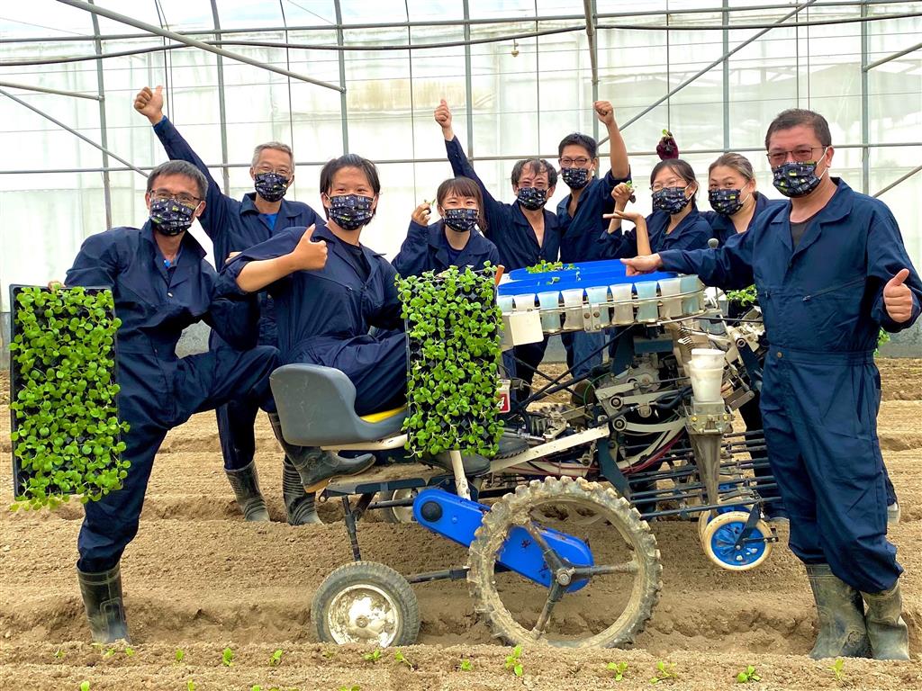 在年底是青花菜、白花菜及高麗菜的產季,改變與以往人工移植不同的方式,藉由提供機械與農耕士、人機一體的服務,也提供對種植有效率田間管理服務,協助農民耕作,以提倡改變蔬菜的種植方式。