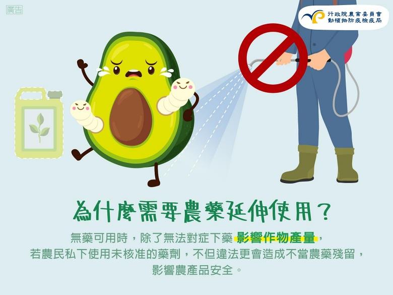 列在允許使用的範圍內。可是,這些作物同樣會有施用農藥的需求,卻未被列於允許使用範圍中,若擅自將農藥施用在這些作物上,就是違法的行為,因此這些作物常面臨無藥可用的局面。
