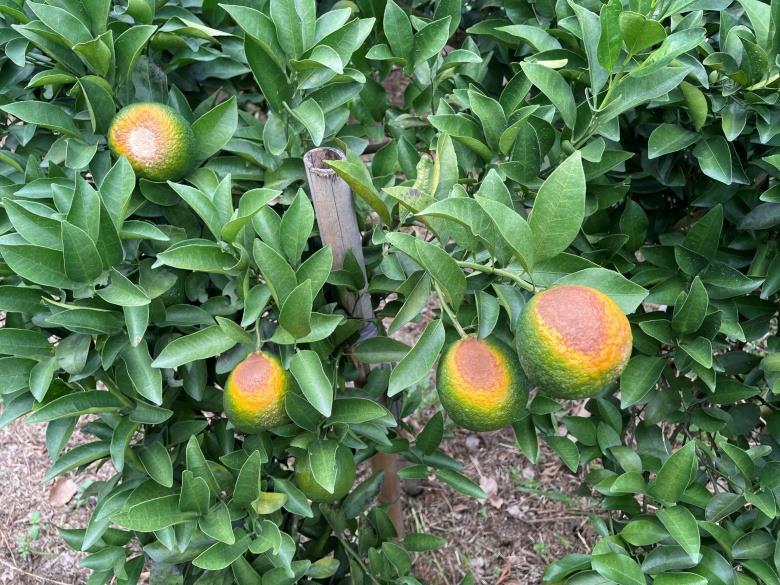 農試所表示,柑橘果實日燒的好發期為每年7月至9月間,果實日燒是受到高溫與烈日直接照射影響,果實吸收過量熱能,造成果皮及果肉組織灼傷,而引起生理障礙。