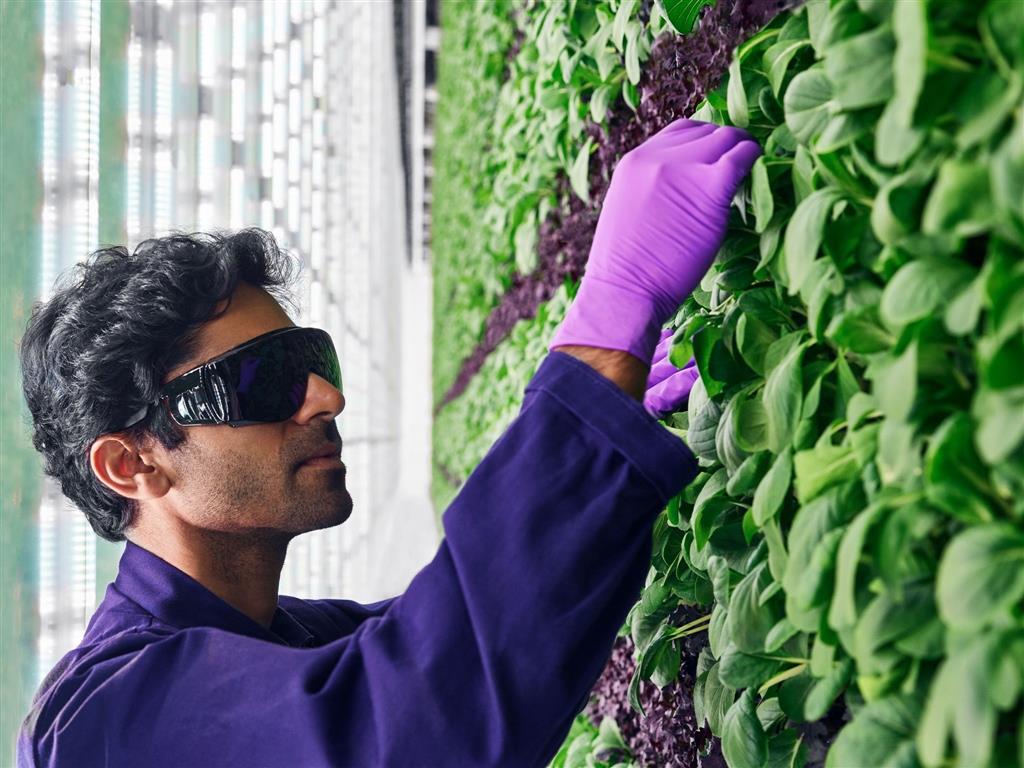 Plenty將一座700英畝的農田濃縮在95000平方公尺的倉庫,將種植農作物所需的土地面積縮到最小,再藉由室內光線、環境控制來調控生長環境,生產過程中無需使用殺蟲劑,而且由於垂直農場不受氣候影響,每年收穫次數甚至較傳統種植方法多。此外,Plenty表示,衛生是他們非常重視的一環,不僅要求工作人員穿著全套的個人防護裝備,也使用機器人進行採摘,讓「第一個用手碰到食物的人就是消費者」。