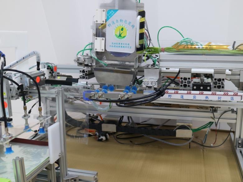 高雄場表示,本機操作非常簡單,只要將野蓮放置於承載台並按下開關,機器即可自動吸取並撐開包裝袋、收捲野蓮、投入包裝袋與封口,完成野蓮包裝一貫化作業。此機器經實際運轉評估,可節省近一半的包裝人力,對於野蓮產業發展與邁向機械化生產,有相當大的助益。
