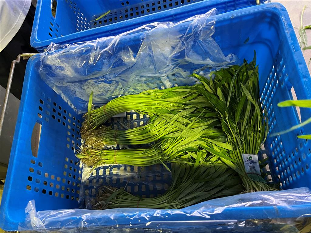 蕹菜或稱空心菜,其採後品質常因清洗、水冷用水水質不佳或貯藏溫度過低等因素受影響。桃改場開發「優化水冷及暫貯技術」,以水冷方式替蕹菜快速去除田間熱,同時避免裸菜販售時萎凋。