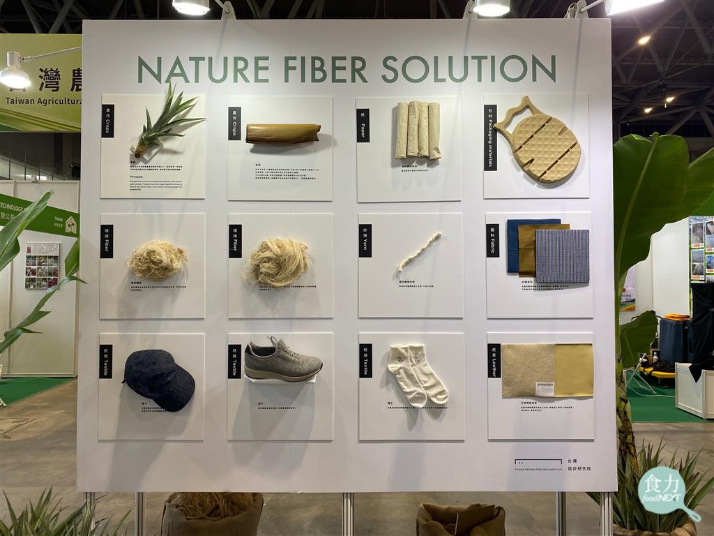 透過農業技術創新,香蕉和鳳梨的水果纖維可被製成紡織品、皮革和包材,為農作物副產品尋得再利用價值。(郝致琪攝)