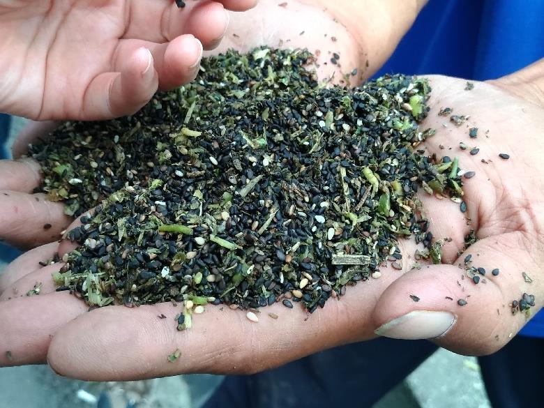 該場引進胡麻機械收穫,雖仍有部分落粒損失及破粒耗損,但綜合考量採收損失及人工成本降低,以及排除日曬期間降雨風險,機械收穫仍有可觀收益。
