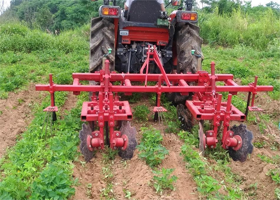 苗栗農改場指出,耕地雜草管理除了使用除草劑外,近年逐漸採用自走式中耕除草機、附掛動力式中耕機組或非動力式碟片除草耙等方式。該場呂場長秀英表示,苗栗地區雜糧栽培尚屬於起步階段,加上平均耕地面積較小,不適合大型農機具迴轉操作,因此於苗栗地區雜糧一貫化省工機械計畫中,優先導入小型曳引機非動力式碟片除草耙。根據在花生田區實際測試結果,該機組執行中耕培土除草作業時速達每小時10公里以上,作業效率為每日2公頃,相較於附掛式動力中耕機組可提升2倍以上作業效率,相較人力自走式中耕培土機除草,更可提升近4倍效率,同時降低農機具操作的碳排放量。但要留意農機具使用時機,若雜草過於濃密,會降低非動力式碟片除草耙作業成效,建議種植後3周左右開始進行除草作業,並依雜草生長狀況調整作業期程。