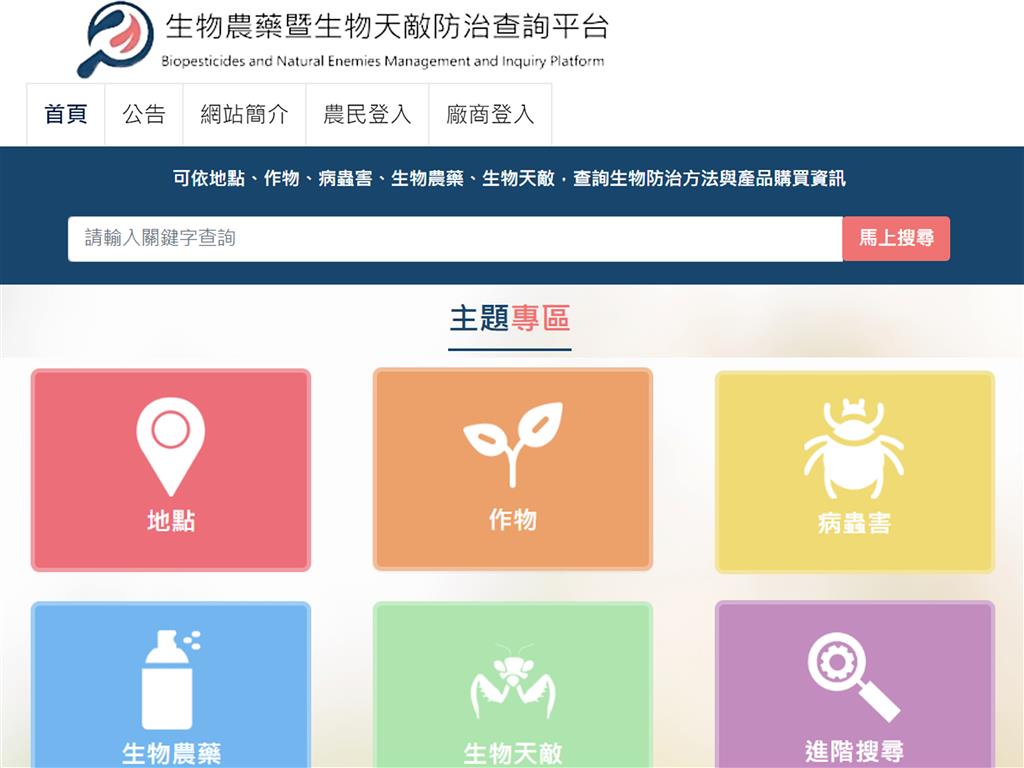 「生物農藥暨生物天敵查詢平台」,整合政府公告生物農藥資訊、幫助農民選擇最適防治資材