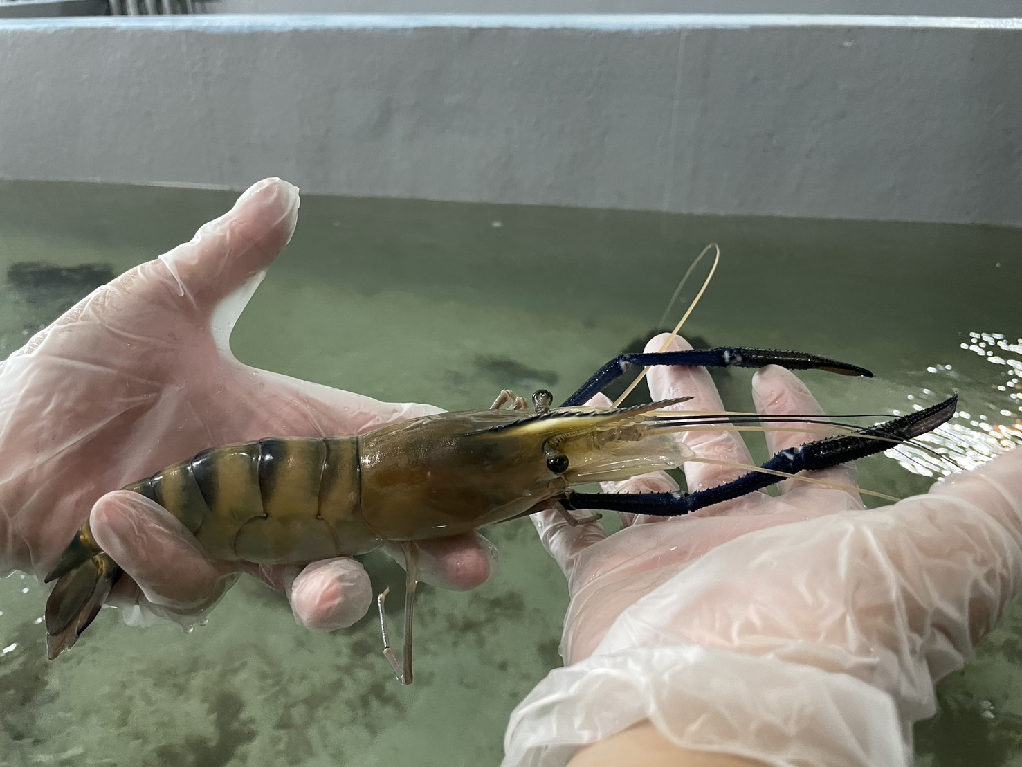 種原庫一樓的「蝦類種原區」專責保存臺灣重要的養殖蝦種種原。(上)白蝦(下)泰國蝦。(圖片來源:農業部提供)