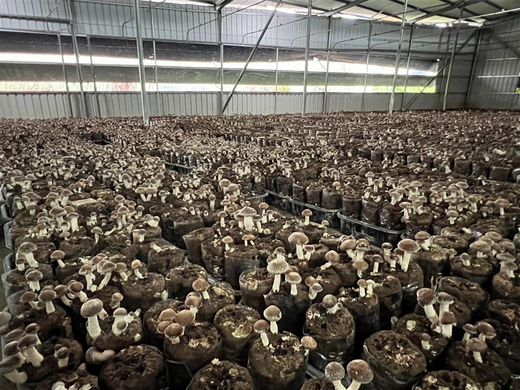 而除了這兩大主力之外,菇農們也種植白木耳、杏鮑菇、珊瑚菇、柳松菇、靈芝等,打造出一片蕈菇天地。