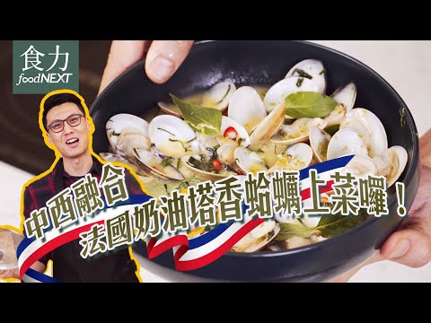 主廚克里斯丁運用法國奶油來製作中西融合的美味料理,在台味十足的塔香蛤蠣中融合奶油的絲滑口感,奶香襯托出蛤蠣的鮮甜,讓經典的台式熱炒華麗變身。